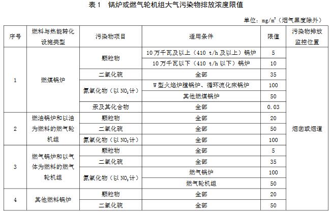 4.22016年9月20日起至本標準實施之日前環境影響評價文件通過審批的燃煤鍋爐,2017年1月1日起至本標準實施之日前環境影響評價文件通過審批的燃油鍋爐和以油為燃料的燃氣輪機組、燃氣鍋爐和以氣體為燃料的燃氣輪機組以及其他燃料鍋爐,新建鍋爐或燃氣輪機組,自本標準實施之日起執行表2中的排放濃度限值。