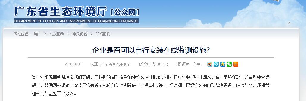 廣東環(huán)保省廳回復|企業(yè)是否可以自行安裝在線監(jiān)測設(shè)施?
