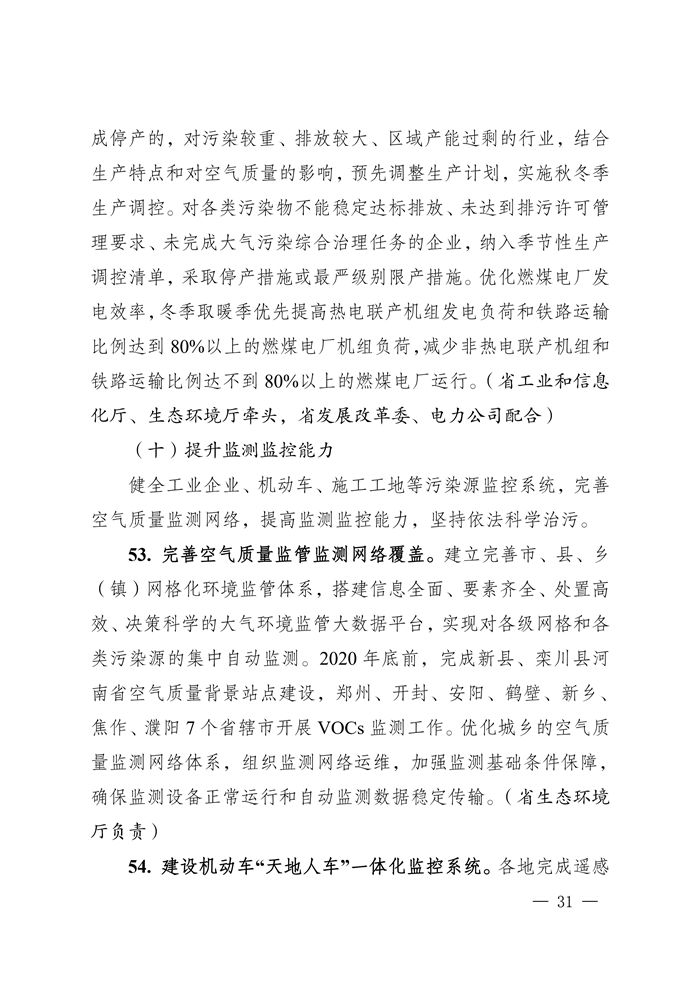 近日,河南省污染防治攻堅戰領導小組辦公室印發《河南省2020年大氣污染防治攻堅戰實施方案》(以下簡稱《方案》)。方案提出: