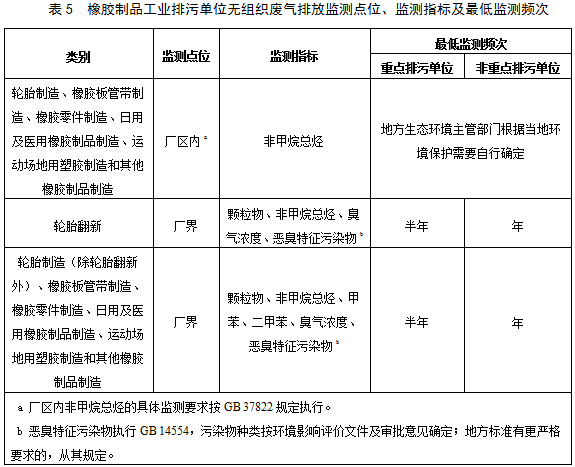 5.2.1.2橡膠制品工業排污單位有組織廢氣排放監測點位、監測指標及最低監測頻次按照表3執行。