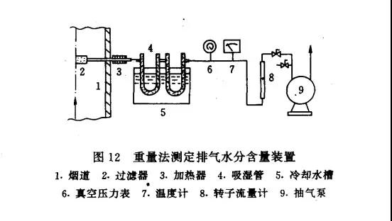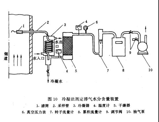 方法原理:煙道中抽取一定體積的排氣,使之通過冷凝器,根據(jù)冷凝出來的水量,加上從冷凝器排出的飽和氣體含有的水蒸汽量,計算排氣中的含濕量。
