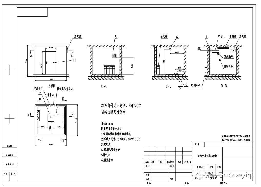 CEMS煙氣在線監測系統分析小屋尺寸圖