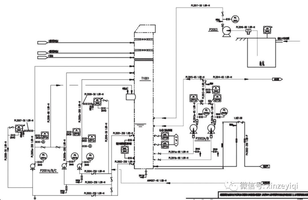 工藝水共有三路,一路為化工區凈循環工業廢水做為主路,一路為循環水,另一路為生產水(做備用)經計量后進入工藝水槽儲存,工藝水槽中的工藝水經工藝水泵輸送至各用水點,包括塔頂補水、除霧器沖洗水、各泵進口沖洗水、離心機沖洗水等。