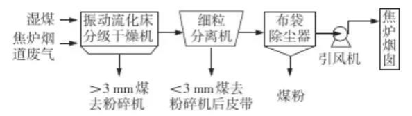 煤調(diào)濕是將煉焦煤在裝爐前除去一部分水分,保持裝爐煤水分穩(wěn)定在6%左右,然后裝爐煉焦。日本、俄羅斯等國家普遍使用,在我國煤調(diào)濕已成為焦化行業(yè)重點(diǎn)開發(fā)并積極推廣的技術(shù)。利用焦?fàn)t煙道廢氣煤調(diào)濕工藝不但可以節(jié)省能源,減少廢氣、廢水、廢熱的排放,而且可以提高裝爐煤堆密度及煉焦初期升溫速度、縮短結(jié)焦時間,從而實(shí)現(xiàn)節(jié)能降耗的目的。