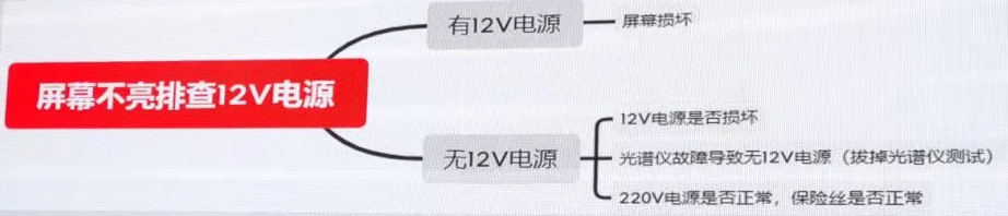 紅線完全消失的這種諧圖一般是光譜沒有接收到光信號。原因可能光譜儀12V電源松動、光源發(fā)射端插頭松動、折射鏡片脫落等。